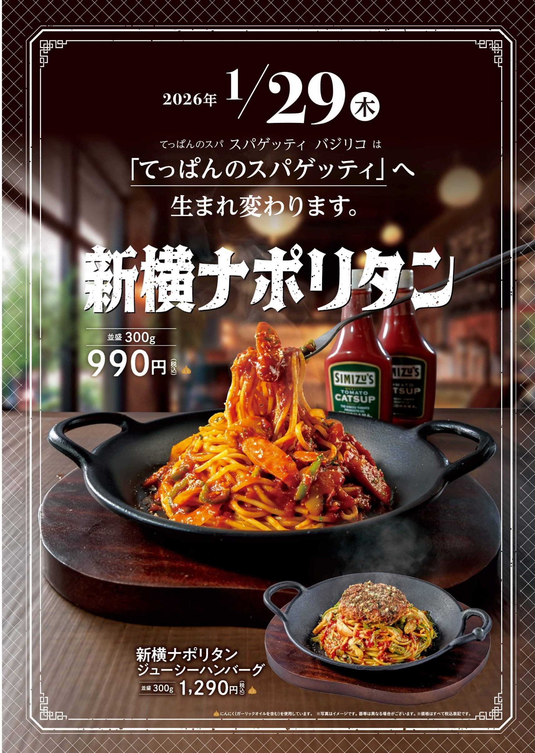 1階ぐるめストリート内「スパゲッティバジリコ」は2026 年1月29日(木)より「てっぱんのスパゲッティ」に生まれ変わります!
