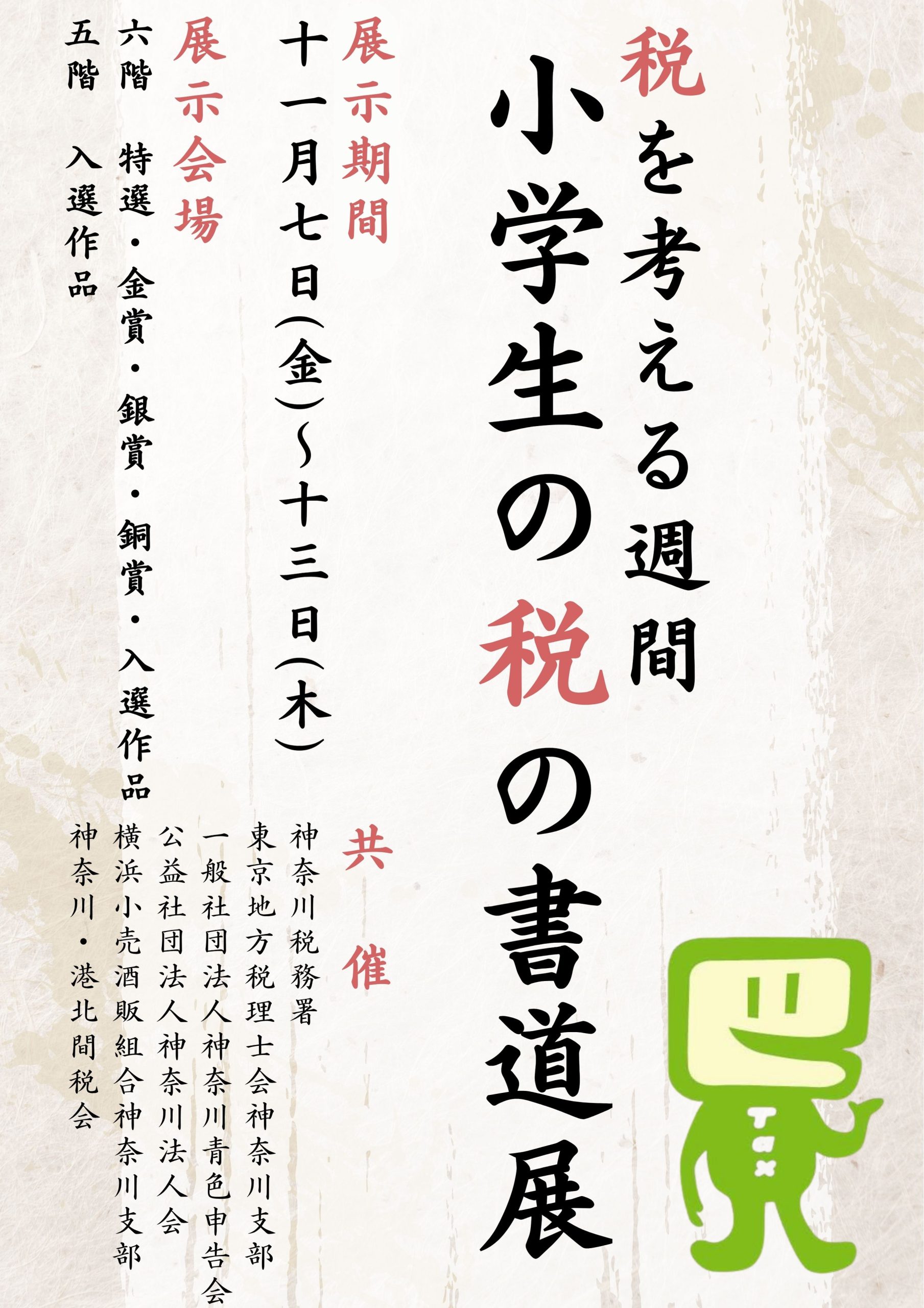 令和7年度「税を考える週間」小学生の税の書道展(11/7金~13木)